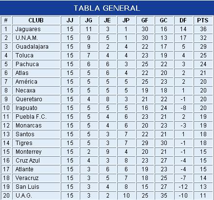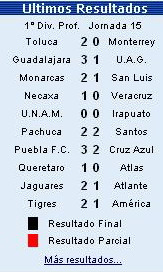 y esta fue la jornada 15, con el gran gusto que perdio el America. El juego que vi esta semana fue el de las chivas y pues la verdad estuvo bastante good good good, les metieron un gol por un error de la defensa pero eso no los paro para meterles 3 a los U.A.G.