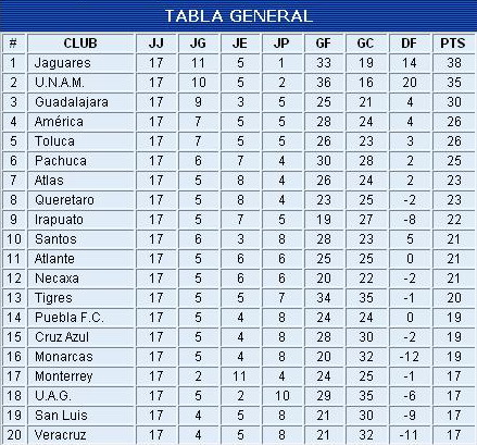 esta semana no vi nada de fut, asi que no voy a opinar sobre el juego de las Chivas, lo que segun he escuchado estubo muy chingon el juego que el portero novato jugo chida, pero pues no lo vi, y no puedo defenderlos y menos llorar por que el clima estaba caliente o por que no estaba el oswaldo sanchez asi como cuando el america se queja que el “Jorobado”Blanco estaba lastimado cuando pierden.